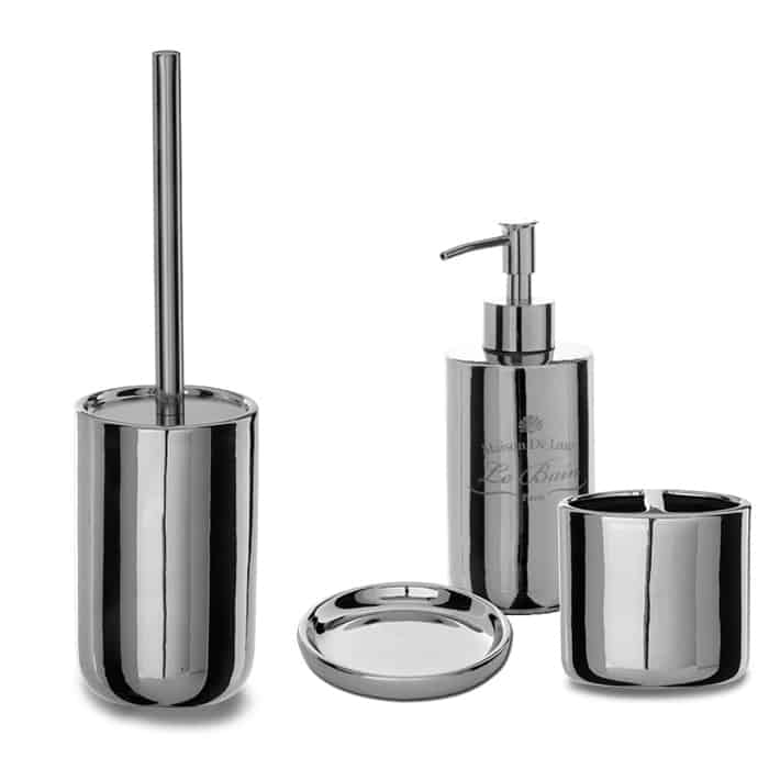 La collezione Cipì Alchimista fa vedere una sostanziale differenza con gli altri arredi in ceramica. Sebbene il materiale di base sia la porcellana, tutti gli elementi della collezione sono decorati con una cromatura completa, disponibile nei colori rame cromo o oro. Pezzi del set: Dispenser Porta spazzolini Porta sapone Scopino
