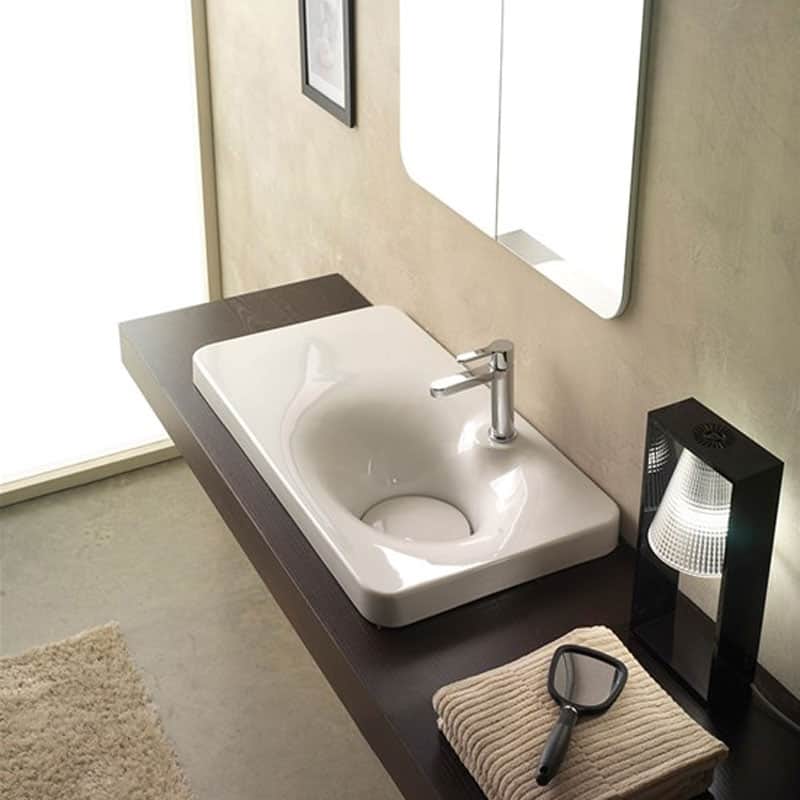 Disegnato per Scarabeo Ceramiche, il sistema bagno Fuji nasce dalla richiesta di realizzare un prodotto funzionale, declinabile e dalla forte personalità. Lavabi disponibili nelle versioni: Lavabo da appoggio o sospeso (dimensioni 50×43,5cm, 71x43cm) Lavabo da appoggio o sospeso con predisposizione per rubinetteria monoforo (dimensioni 50×43,5cm, 71x43cm) Lavabo da incasso (dimensioni 80x44cm con asimmetria a destra o a sinistra, 50x44cm)