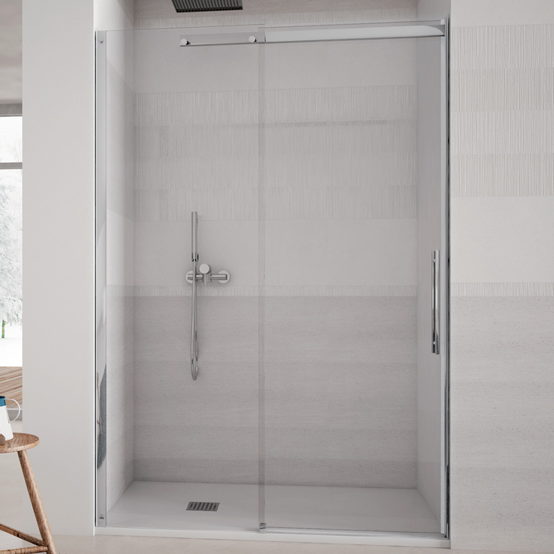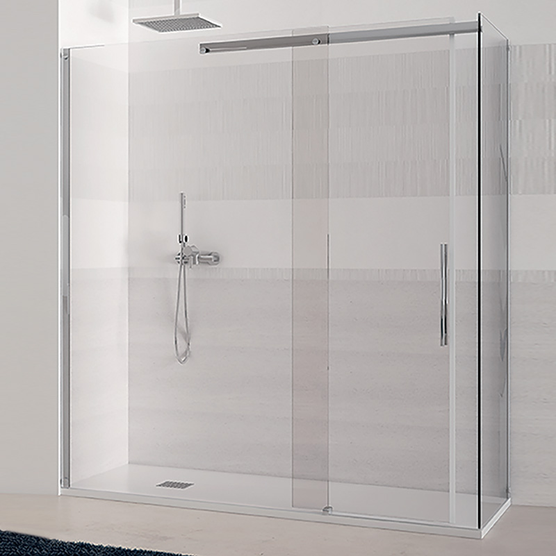 Disponibile in due versioni: Parete doccia fissa di profondità, da abbinare per l’installazione ad angolo Parete doccia con porta scorrevole e fisso in linea per installazione in nicchia, da abbinare per formare cabine doccia ad angolo