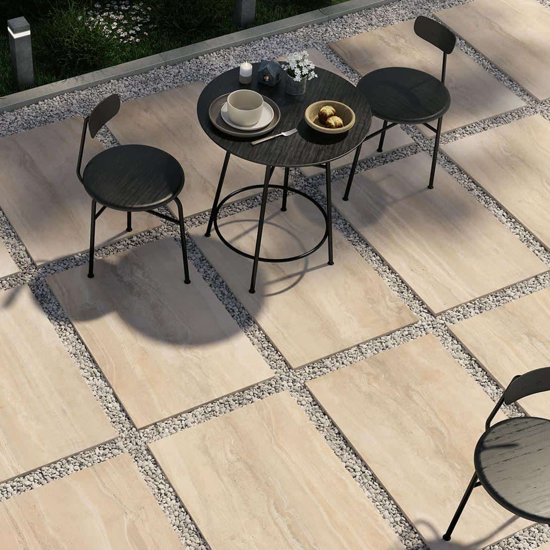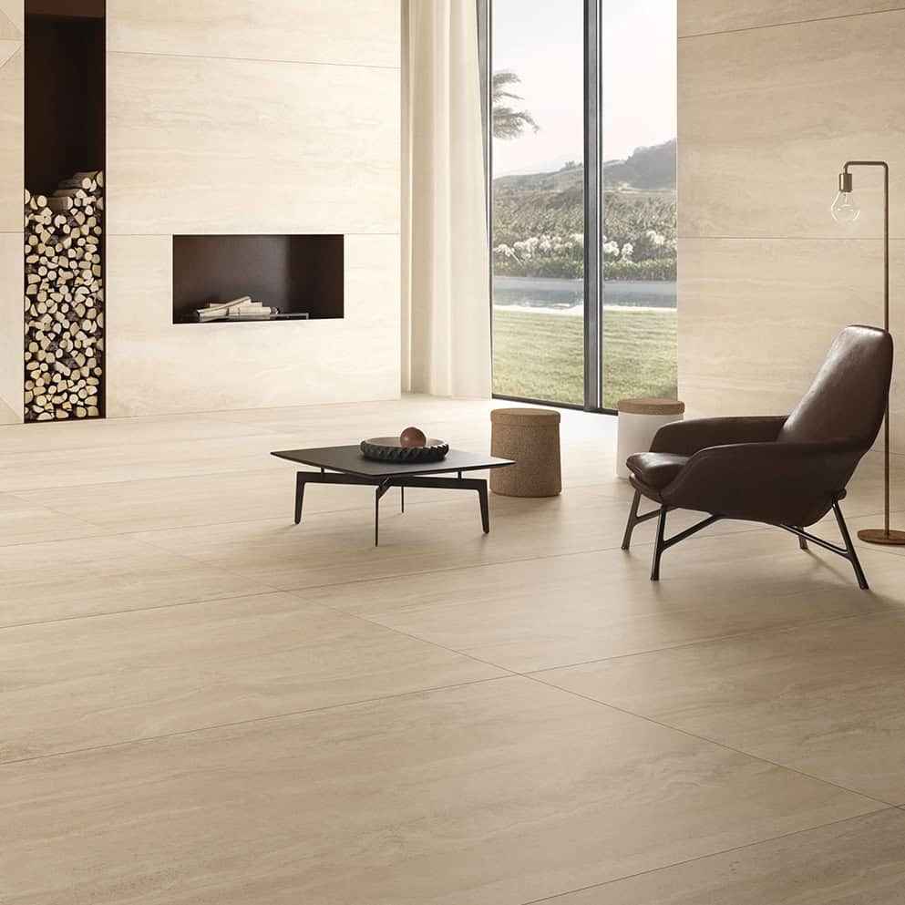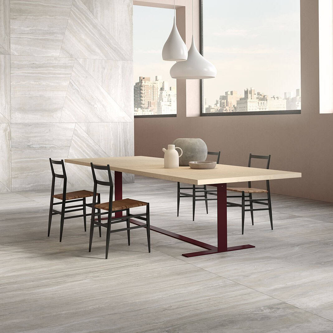 Collezione di gres porcellanato effetto pietra che riprende il retro delle lastre in travertino, dalle grafiche più sottili e quasi sbiadite. Lo stile è in linea con la tendenza “raw”, che valorizza le superfici irregolari e naturali e le reinterpreta con una nuova raffinatezza. Questa texture, meno evidente e parzialmente imperfetta, crea un effetto elegante e sofisticato.