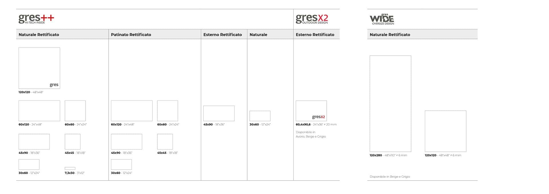 | Formati | cm 120x120, cm 30x60, cm 45x45, cm 45x90, cm 60x120, cm 60x60, cm 7,3x30 |