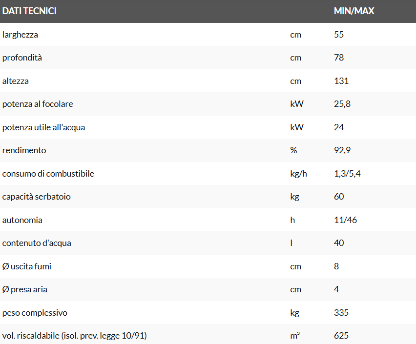 Questa gamma di caldaie a pellet è disponibile in tre potenze diverse, adatte per alimentare i termosifoni e abbinabili a caldaie a gas o pannelli solari. È possibile produrre acqua calda sanitaria tramite kit e accessori opzionali. Inoltre, è disponibile una valvola anticondensa per un funzionamento ottimale.