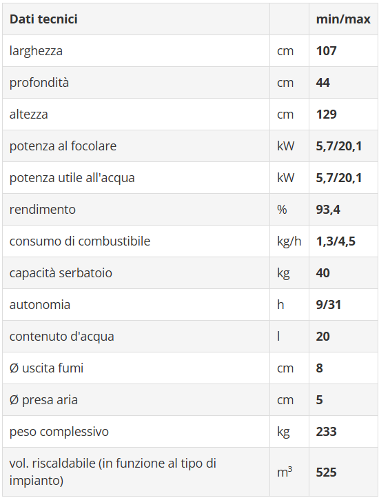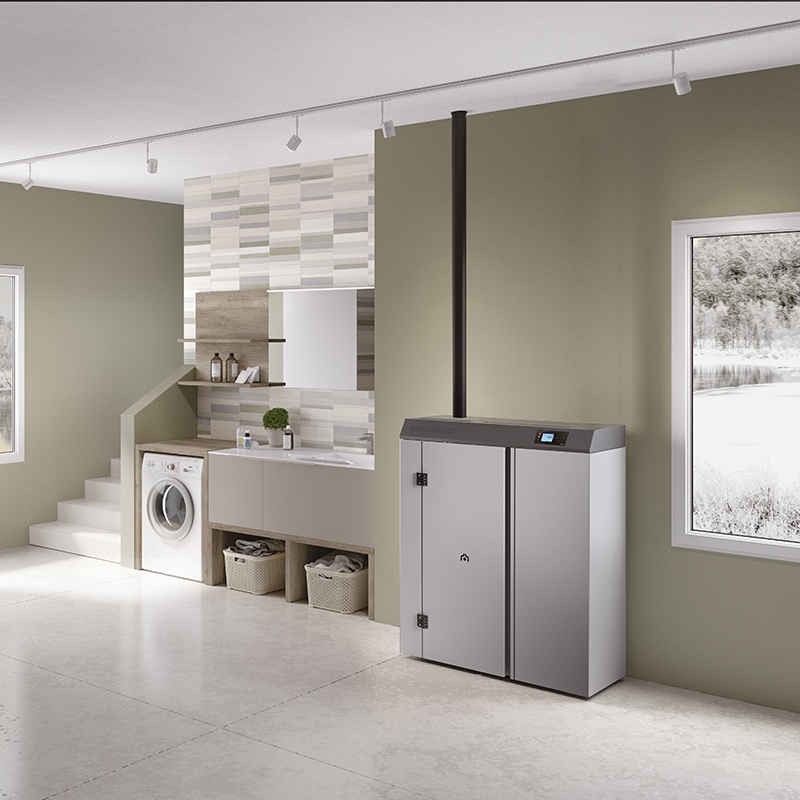 Caldaia a pellet compatta, con serbatoio laterale che consente di avere l'ingombro a soli 44 cm e possibilità di estendere l'autonomia con un serbatoio aggiuntivo. Il display frontale permette di programmare il riscaldamento e configurare l’impianto, mentre il sistema The Mind con WI-FI integrato consente il controllo tramite app. È anche dotata di EKleaner, per la pulizia del crogiolo e dei turbolatori.