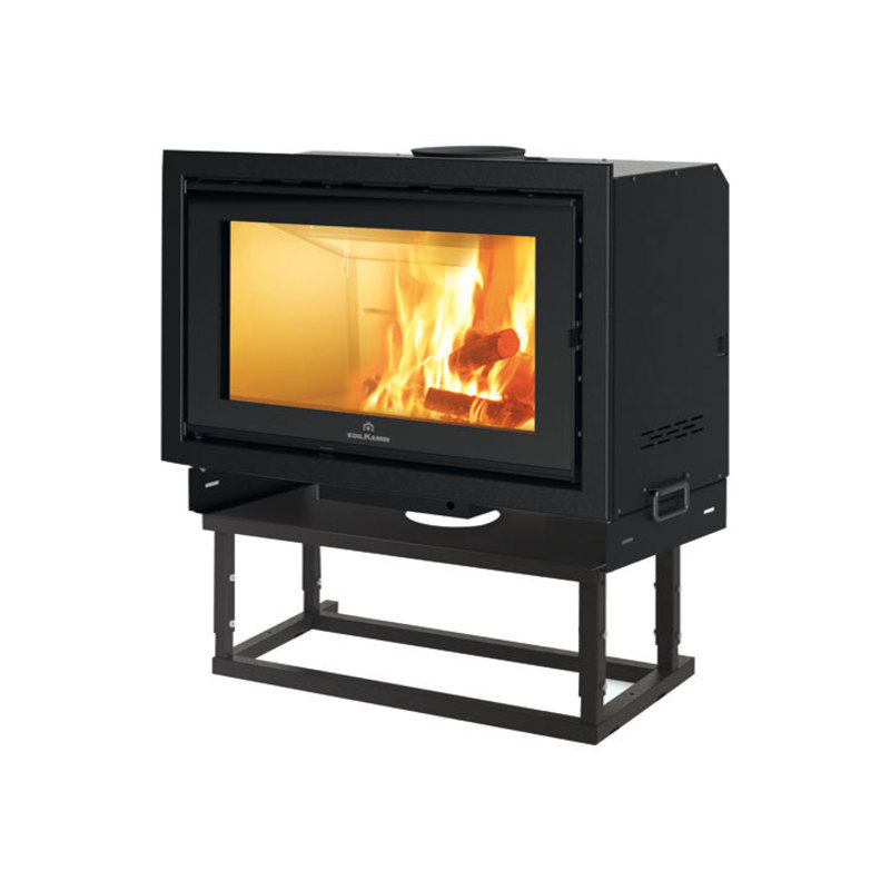 Focolare a legna canalizzabile (con kit opzionale) dal design con ampia visione della fiamma per un'atmosfera accogliente. L'anta reversibile permette l'installazione con apertura a destra o sinistra, adattandosi alla disposizione dell'ambiente.