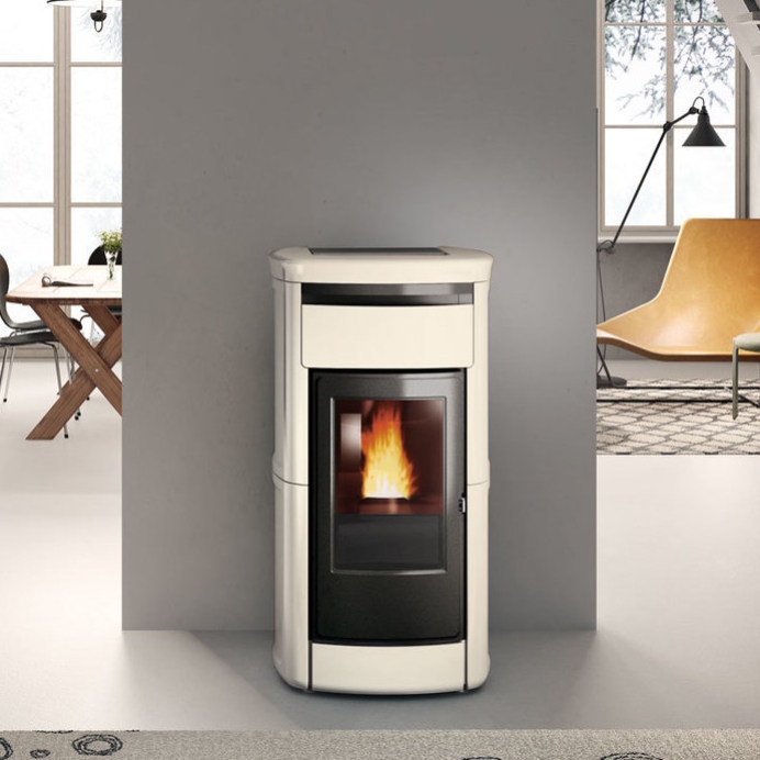 Questa termostufa a pellet con rivestimento in ceramica dal design classico riscalda l’intera casa tramite acqua calda e produce anche aria calda per il locale d'installazione, con opzione di disattivazione ed offre un'ottima soluzione per un riscaldamento centralizzato e rapido.